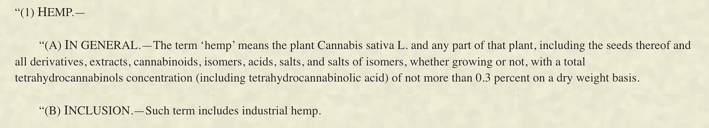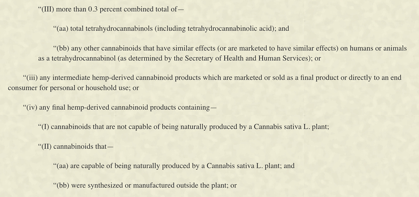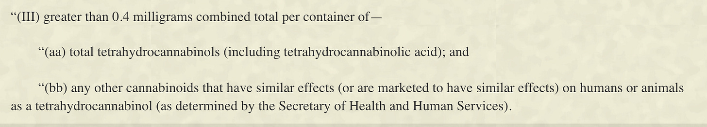 This wording is broad enough to capture nearly every form of hemp THC — past, present, and future — as well as secondary cannabinoids that were never meant to be targeted — like CBN, THCV, and several CBD metabolites.