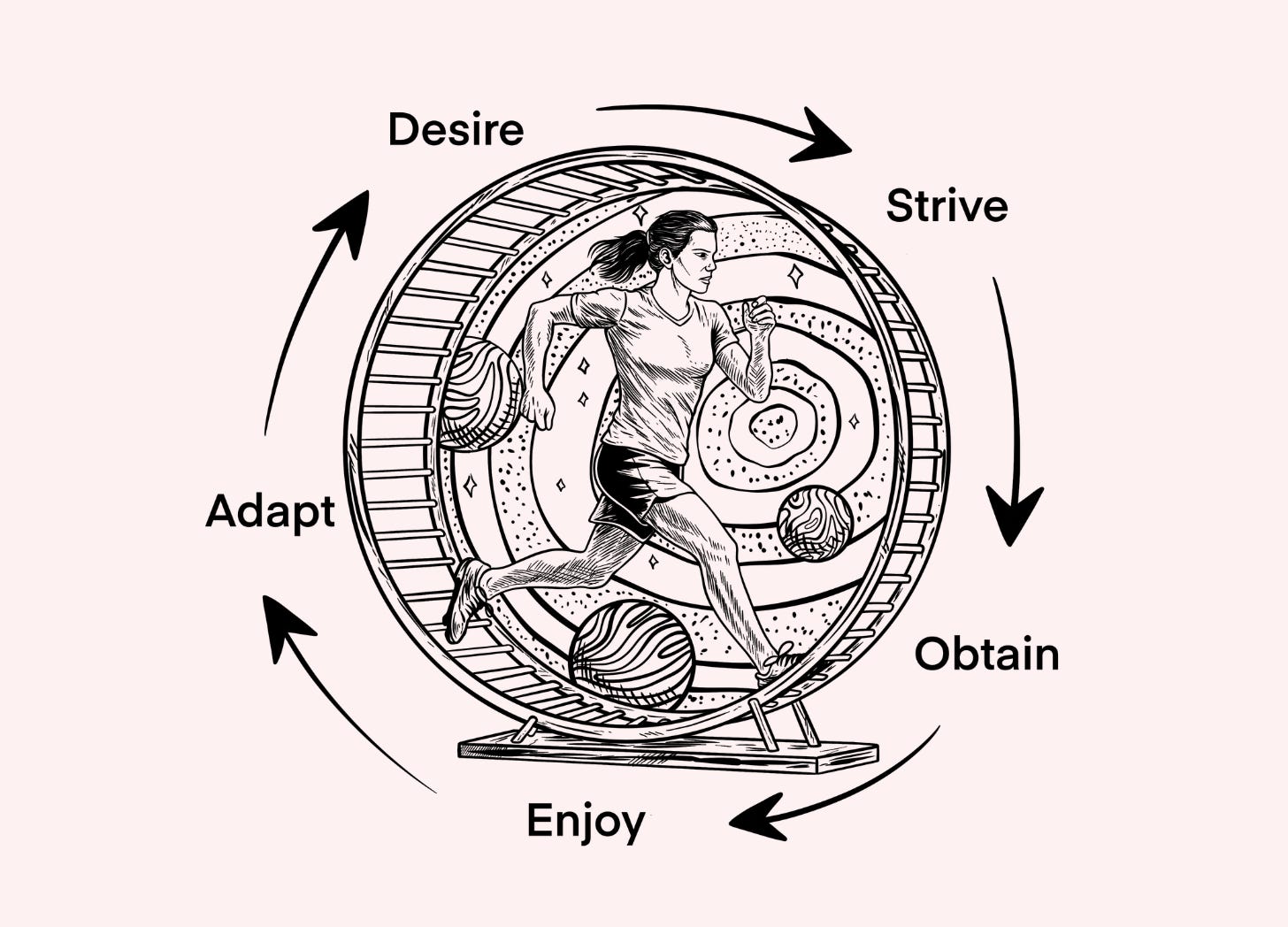 The treadmill continues to perpetuity — not because we’re weak or irrational, but because the loop is so automatic. We don’t consciously decide to want the next thing — we simply find ourselves wanting it.